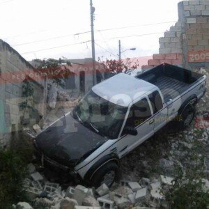 El vehículo primero chocó contra el poste de concreto de la CFE el cual quedó sostenido solo con los cables de energía eléctrica. De ahí impactó a la minivan Town and Country con placas DHU-6975, la cual se encontraba estacionada y de ahí le pegó a otro poste ahora de alumbrado público el cual derribó.