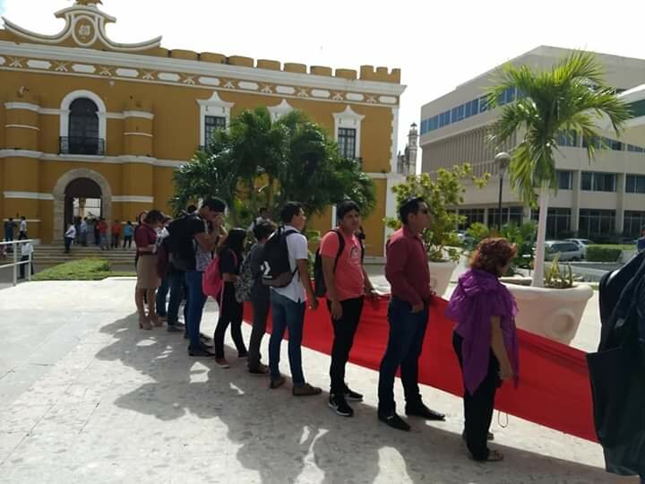 En conmemoración del día mundial de la lucha contra el SIDA, los alumnos de la escuela Computación del Golfo en colaboración con la asociación civil “Unidos por una vida digna A.C” se presentaron frente al Congreso del estado y al Palacio de Gobierno para pedir mejores leyes de protección contra los afectados por este mal.
