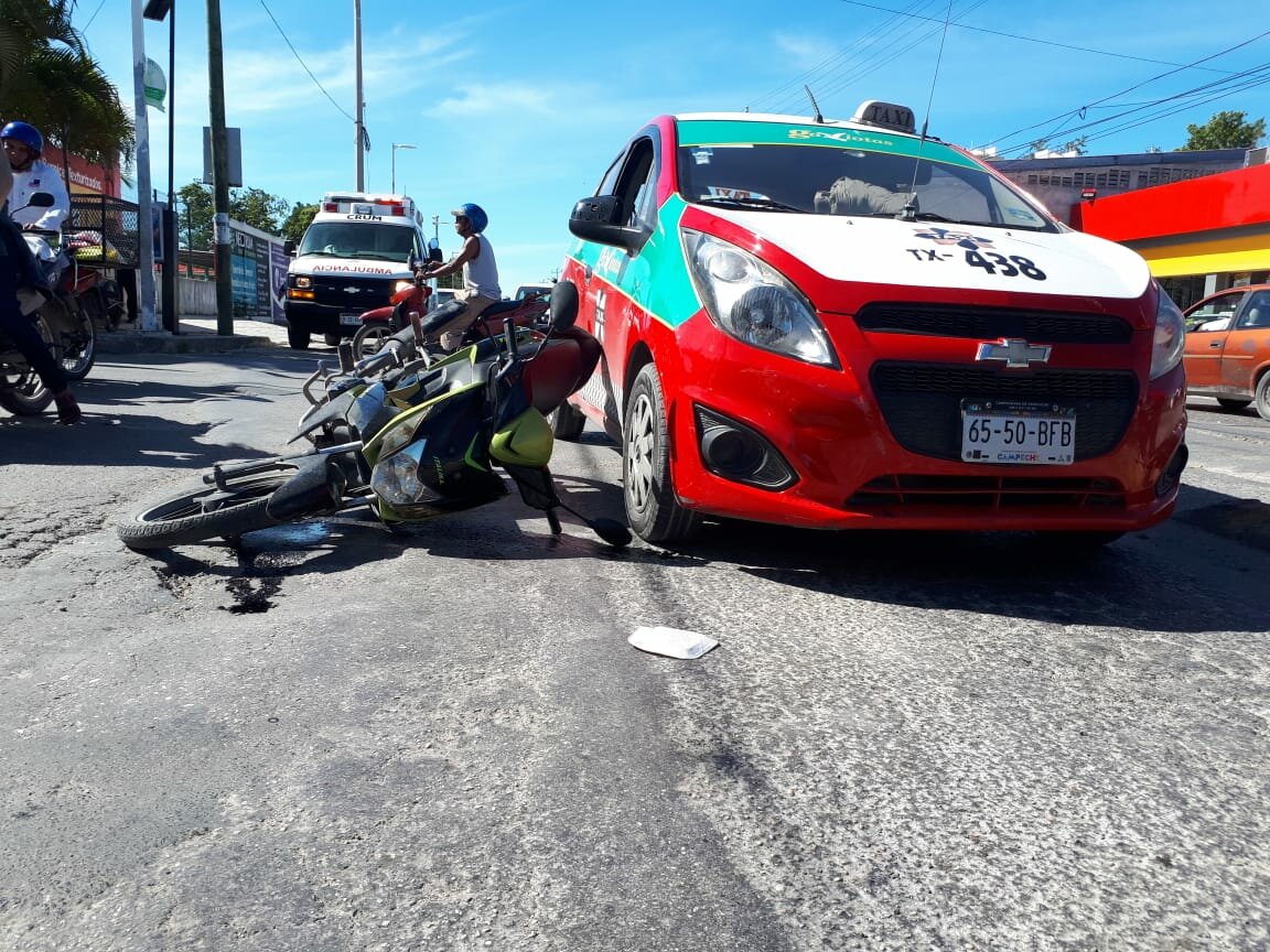 Al llegar a la calle Jalisco, el taxi impactó a la motocicleta Itálika con placas SMN1X. La mujer que viajaba a bordo de la motocicleta venía bajando de la calle Jalisco en compañia de su hija y al llegar a la avenida no respetó su alto.