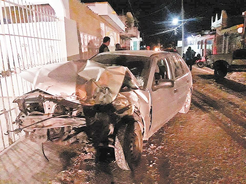 Tras arrollar a un motociclista luego de no respetar su alto, el conductor de un automóvil en estado de ebriedad se dio a la fuga e impactó a una camioneta estacionada que a su vez le pegó a la pared de un predio en la colonia Samulá.