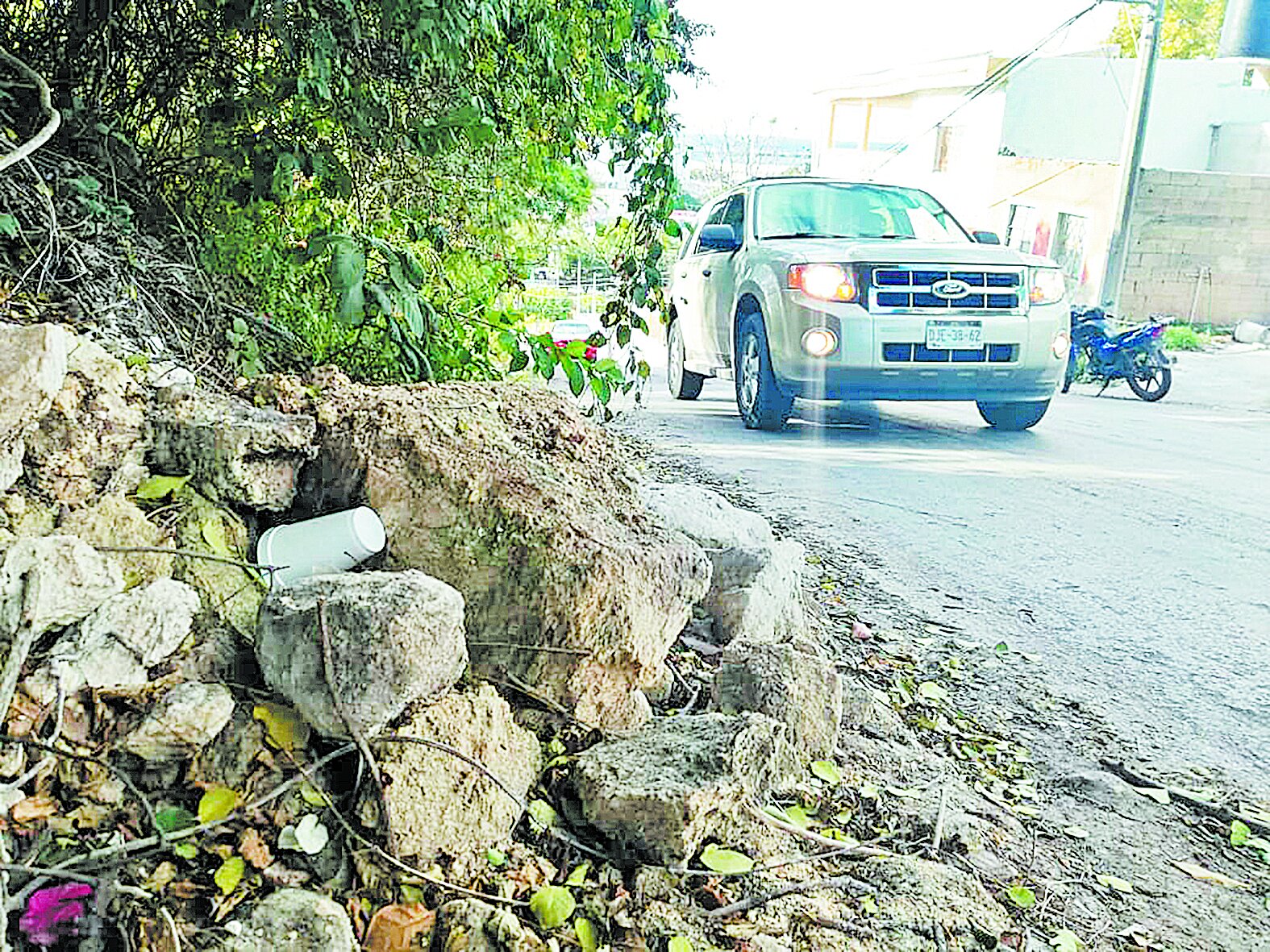 Aseguran que desde hace algunas semanas los pedazos escombro y piedras de diferentes dimensiones permanecen tirados sobre la carpeta asfáltica, invadiendo una parte de la vialidad.