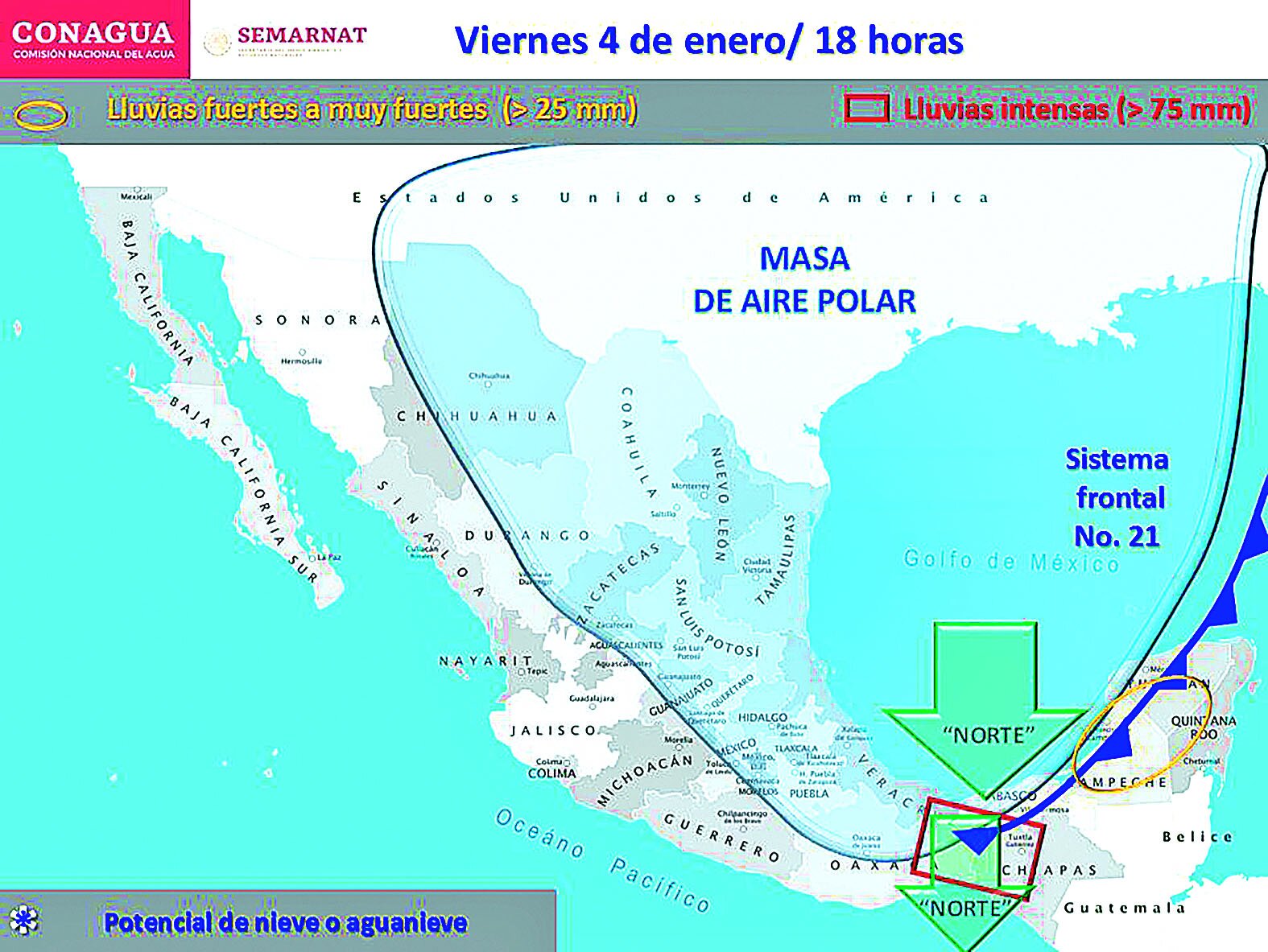 El Frente Frío No 21 se ubica en el Golfo de México y será impulsado por una Masa de Aire Frío, lo que alcanzará a Campeche en el transcurso del día de hoy ocasionando cambios en las condiciones del tiempo en la entidad.