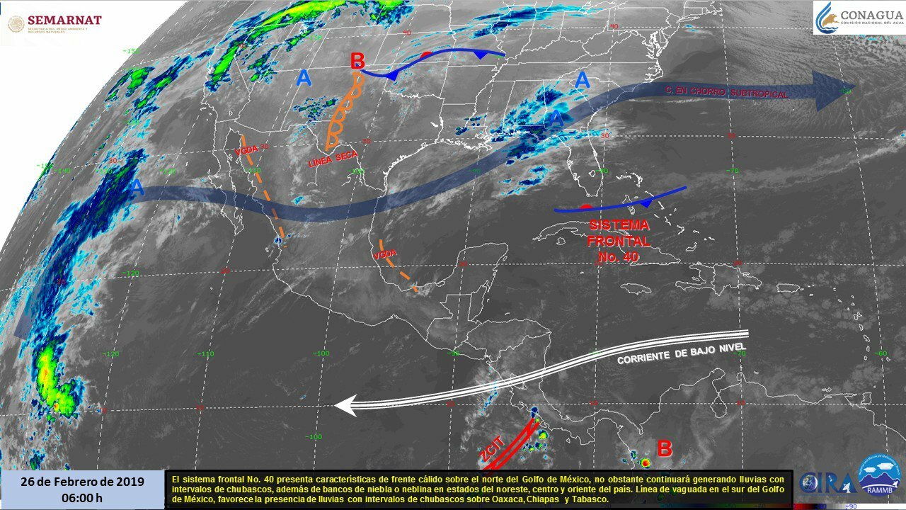 El Servicio Meteorológico Nacional (SMN) pronostica que para este martes 26 de febrero el frente frío 40 con características cálidas se extenderá sobre el noreste del país y norte del Golfo de México, la masa de aire frío que lo impulso, empezará a modificar sus características, por lo cual, se prevé un incremento en las temperaturas máximas en gran parte del territorio nacional.