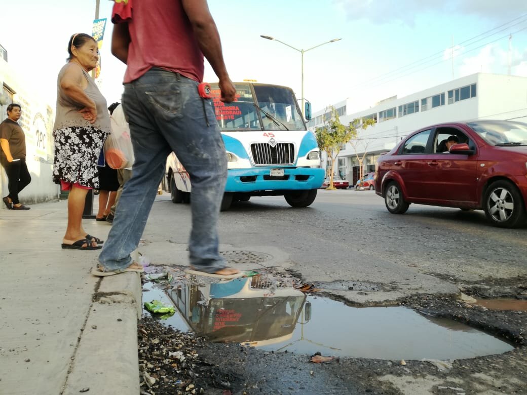 Los baches se encuentran a un costado del paradero de transporte público, ubicado justo enfrente de la terminal de autobuses de segunda clase en dicha avenida.