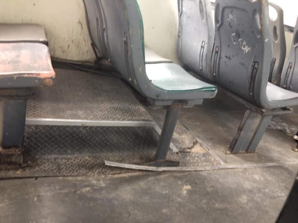 Aunado a ello, las unidades presentan un sinfín de deficiencias, entre ellas, sillas rotas, tubos zafados, falta de iluminación, así como malos olores y la falta de piso a la altura de las llantas.