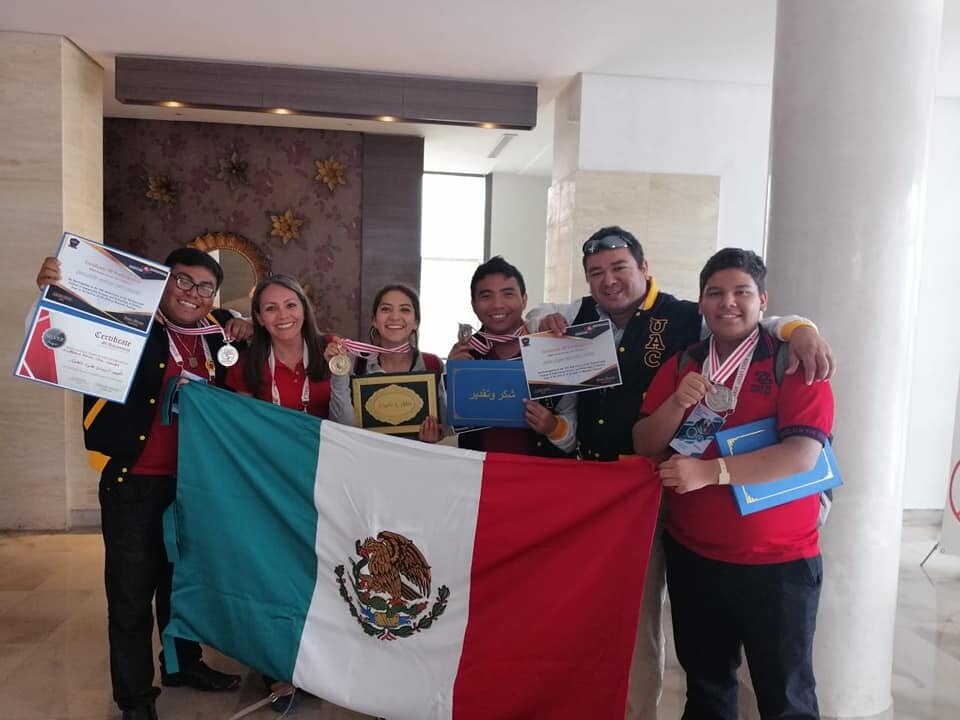 Los alumnos egresados del Programa Educativo de Ingeniería en Mecatrónica que se imparte en la Facultad de Ingeniería de la Universidad Autónoma de Campeche, Guillermo Adrián Chin Canché y Javier Alejandro Quí Martin, asesorados por el catedrático Dr. J. Edgar Andrade Durán, se adjudicaron la Medalla de Plata en la categoría de Ingeniería y Medio Ambiente al participar en el Festival Internacional de Ciencia y Tecnología de Ingeniería 2019, celebrado en la ciudad de Monastir, Túnez, África, del 21 al 29 de marzo.