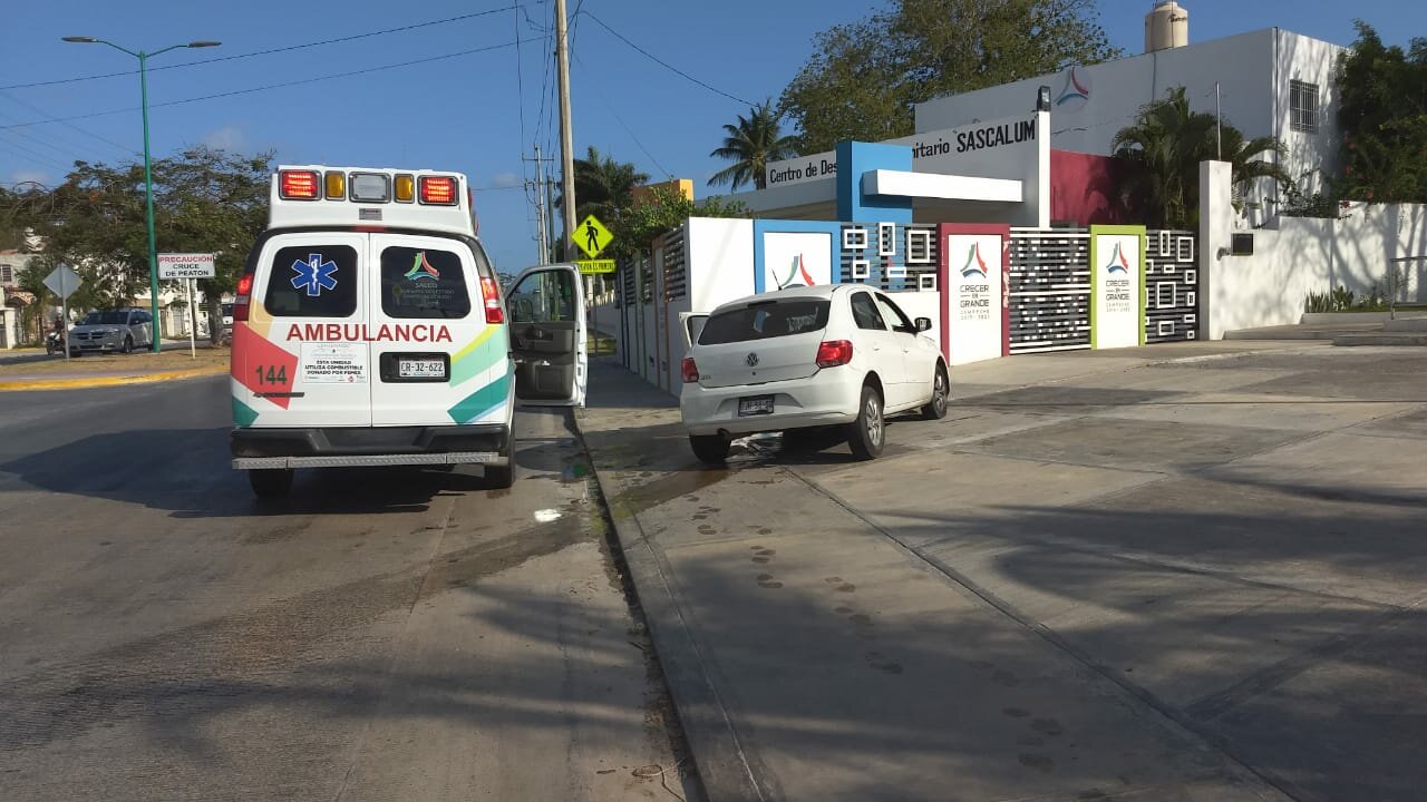 Al llegar a la altura del Centro Comunitario de Sascalum, el conductor del automóvil perdió el control y por ello chocó contra el camellón.