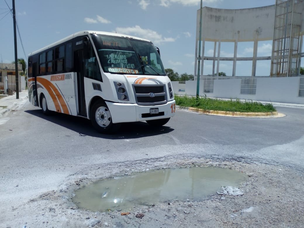 Unidades de transporte público urbano y taxis, también se ven afectados por el pésimo estado de las calles del fraccionamiento Ex Hacienda Kalá o Siglo XVIII.