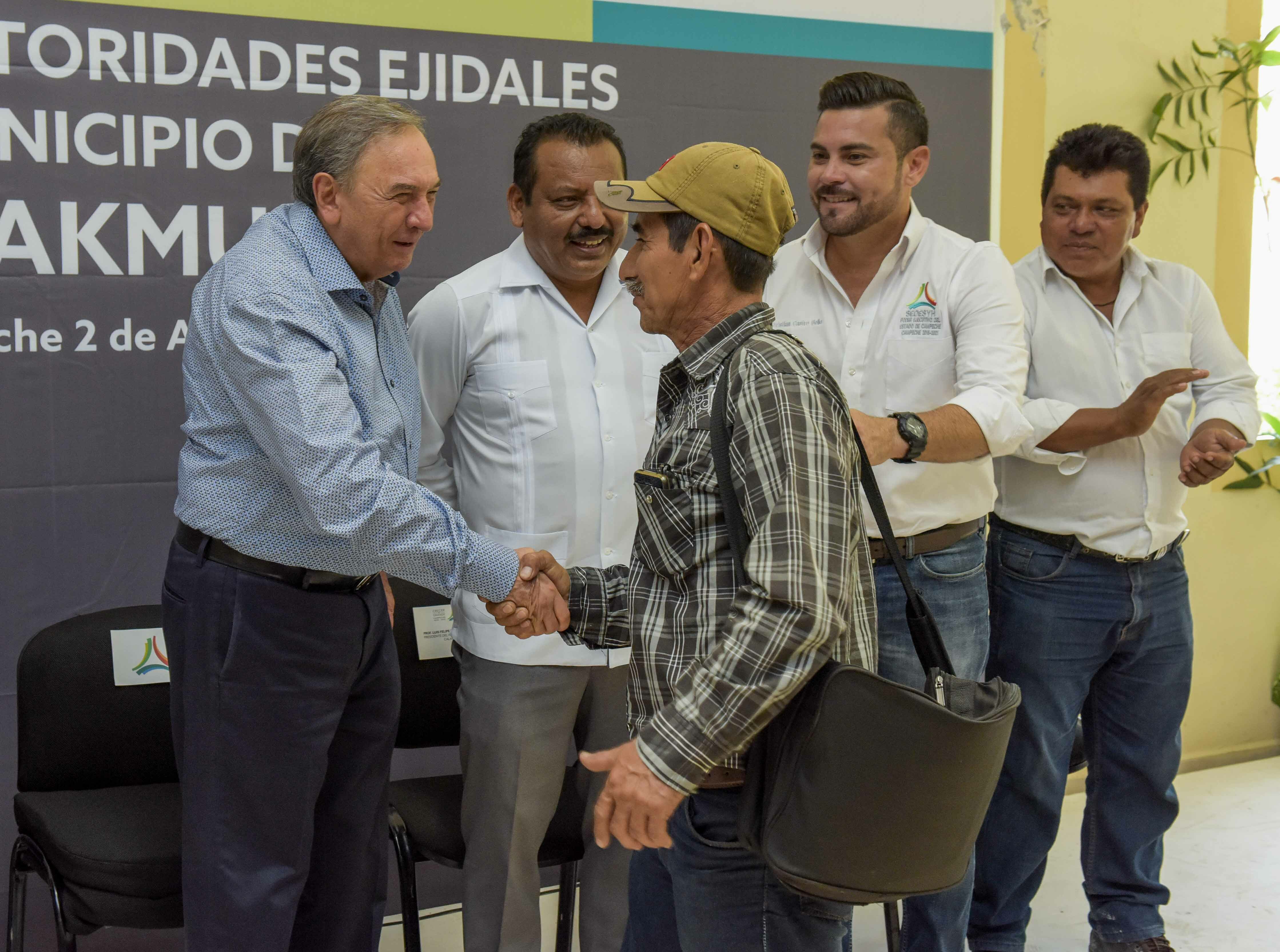 El gobernador Carlos Miguel Aysa González tuvo un encuentro con 79 comisarios ejidales de Calakmul, donde anunció que este año se invertirán más de 200 millones de pesos en la construcción de 80 kilómetros de caminos sacacosechas, entrega de microcréditos para el sector productivo y obras de infraestructura social en materia de agua, educación y vivienda.