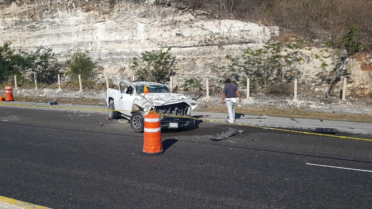 Al llegar entre el entronque a la avenida Ramón Espínola Blanco y la antigua carretera a Mérida, el conductor de la camioneta perdió el control y por ello se subió al camellón violentamente, y al estar a desnivel el otro carríl del periférico, la camioneta se volcó varias veces.