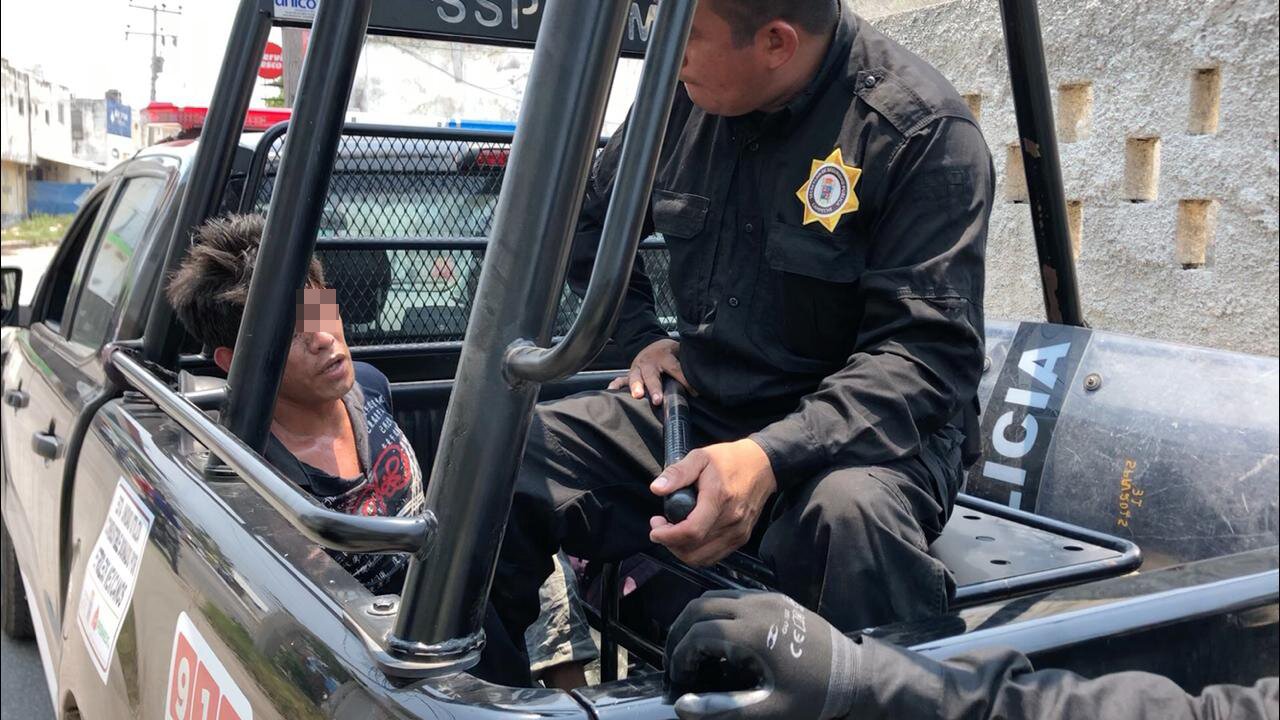 Los agentes de la Policía Estatal Preventiva (PEP) aseguraron al sujeto sobre la prolongación de la calle Pedro Moreno.