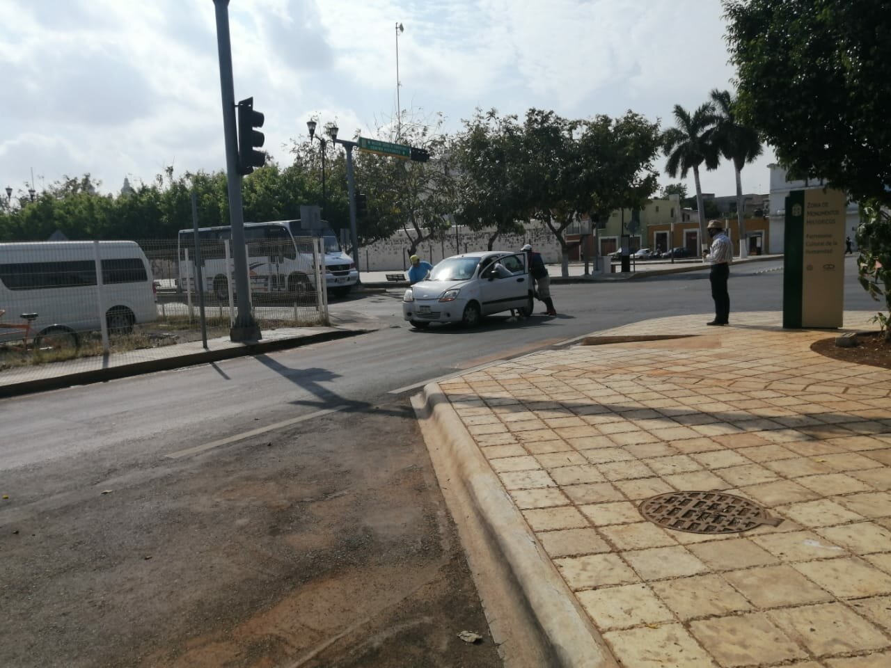 El conductor del automóvil chocó contra el poste del semáforo y tras el accidente el conductor se quedó en el lugar del accidente.