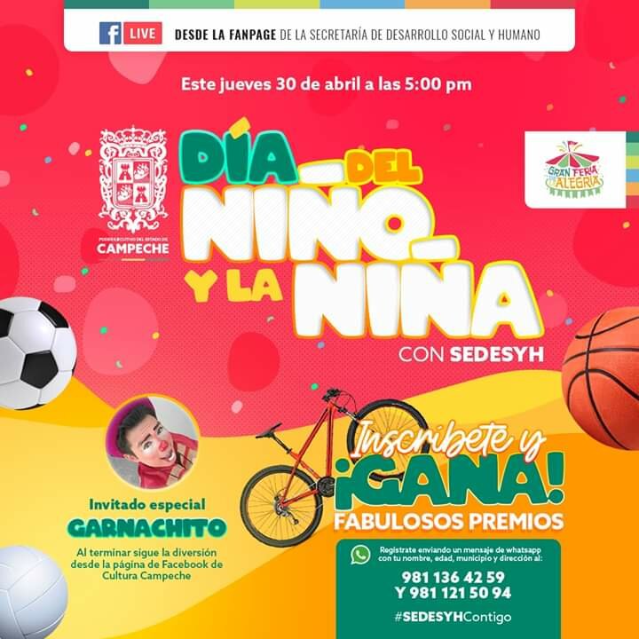 La Secretaría de Desarrollo Social y Humano (Sedesyh), festejará a los niños campechanos en su día y será a través de una transmisión especial en sus redes sociales. Las niñas y niños son la fortaleza de Campeche, por eso el Gobierno del Estado enfoca esfuerzos y programas que ayuden a impulsar su pleno desarrollo, así lo recalcó su titular Christian Castro Bello.