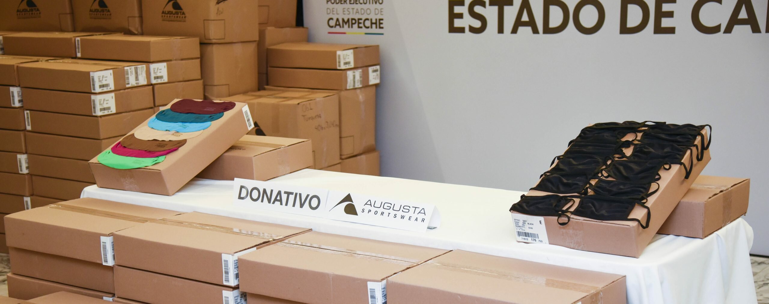 La empresa maquiladora Augusta Sportswear Brands entregó al gobernador Carlos Miguel Aysa González una primera remesa de 200 mil cubrebocas que serán distribuidos de manera generalizada entre la población para promover su uso obligatorio como medida de prevención.