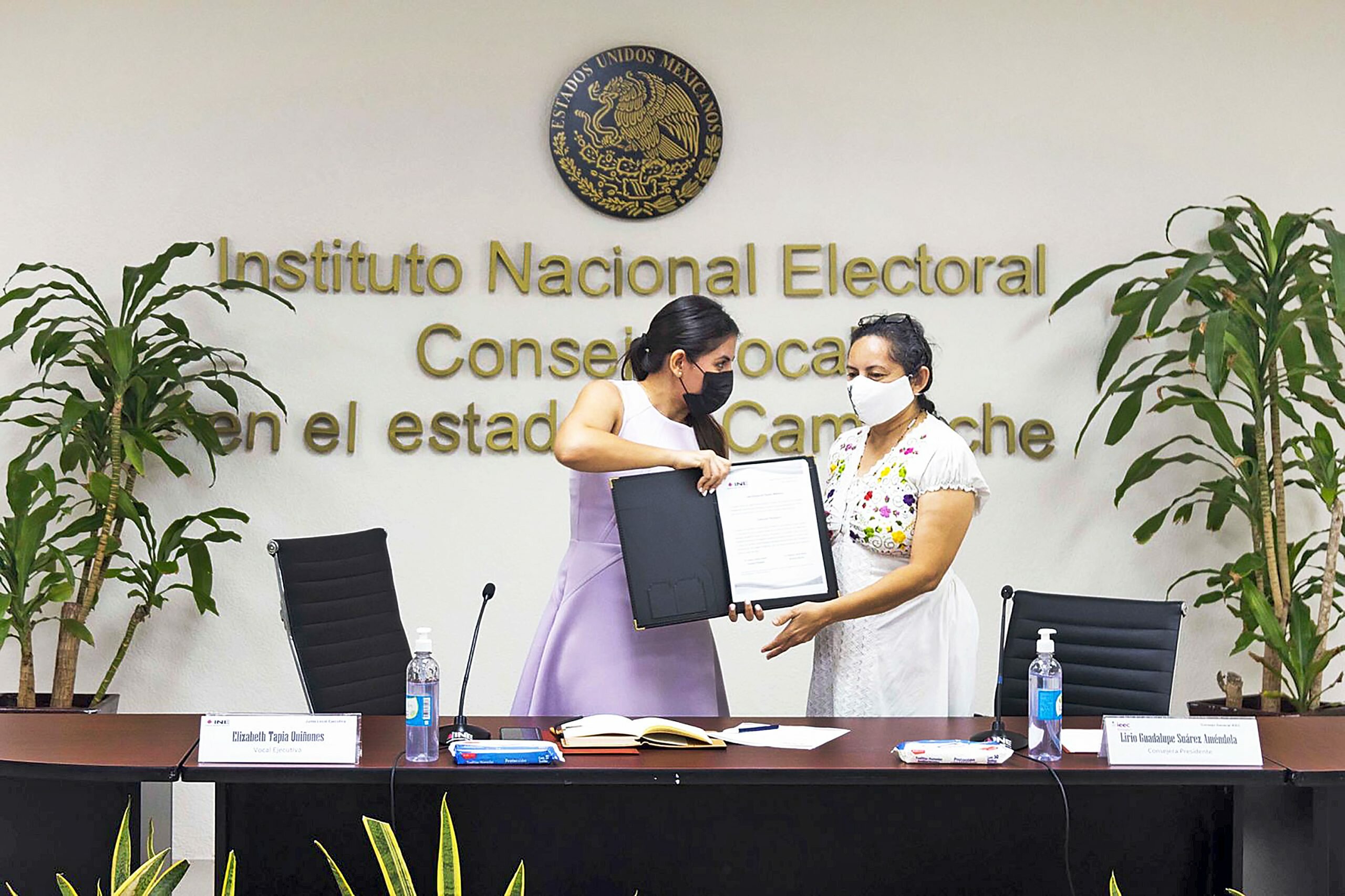 Ante los integrantes del Consejo General del Instituto Electoral del Estado (IEEC), y representantes de partidos políticos, Suárez Améndola rindió protesta como la consejera presidenta de ese organismo para el periodo 2021-2028.