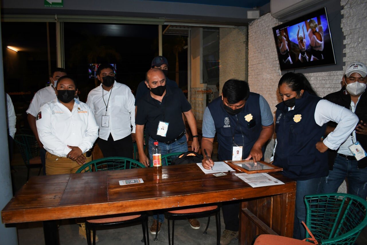 Nuevamente personal de la Alcaldía de Campeche llevó a cabo un operativo conjunto donde participaron personal y titulares de las direcciones de Desarrollo Económico y Turismo, Protección al Medio Ambiente, Tesorería Municipal, Protección Civil Municipal y Obras Públicas y Desarrollo Urbano, para dar continuidad a la revisión de diversos negocios en su documentación y supervisar que se cumpla con los límites permitido de ruido.