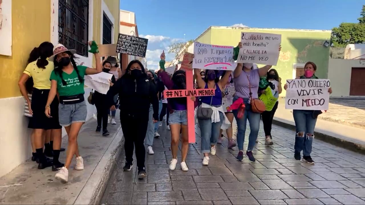 Las manifestantes continuaron su trayecto hasta llegar a los bajos de la Catedral de Campeche, donde una vez más lanzaron consignas, ahora sobre el aborto, donde expresaron, entre varias cosas, “¡Saquen sus rosarios de nuestros ovarios! ¡Saquen su doctrina, de nuestras vaginas!”, o bien “¡Aborto sí, aborto no! Eso lo decido yo”.