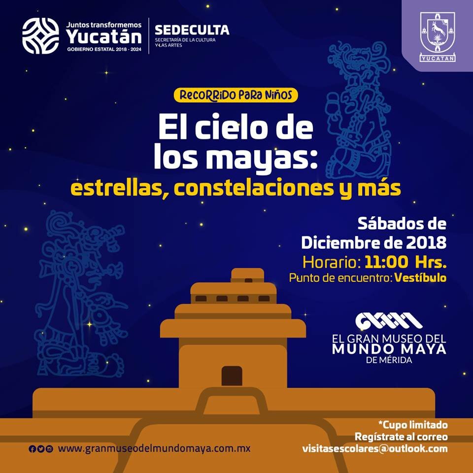 El Cielo de los Mayas es el título de un recorrido temático para niños que se ha llevado a cabo todos los sábados del mes de diciembre a las 11 de la mañana en el Gran Museo del Mundo Maya.