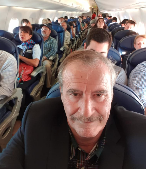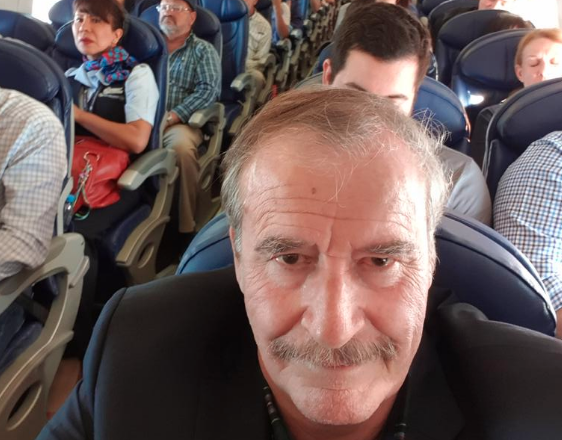 El ex mandatario mexicano Vicente Fox Quezada, compartió este jueves en su cuenta de Twitter una selfie a bordo de un vuelo comercial acompañada de un texto que hace énfasis en el hecho de que viaja igual que el Presidente Andrés Manuel López Obrador; en respuesta, usuarios no han dejado de responder al ex mandatario con memes y burlas.