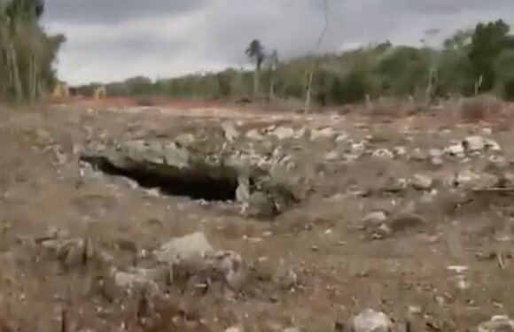 Por ejemplo, en un video publicado en redes sociales, se muestra cómo, para hacer posible la obra, se aplasta prácticamente la entrada a las cuevas o cenotes que abundan en la zona. El narrador enlista las razones de ser de estas áreas naturales; desde cabidades para el flujo del agua, hasta lugares sagrados para los ancestros mayas. “Lo peor que he visto de esta devastación”, expresa con preocupación.