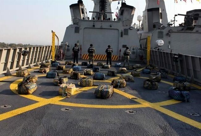 Elementos de la Marina aseguraron casi dos toneladas de cocaína y detuvo a ocho presuntos narcotraficantes en las costas de Lázaro Cárdenas, Michoacán, informó la Armada de México.