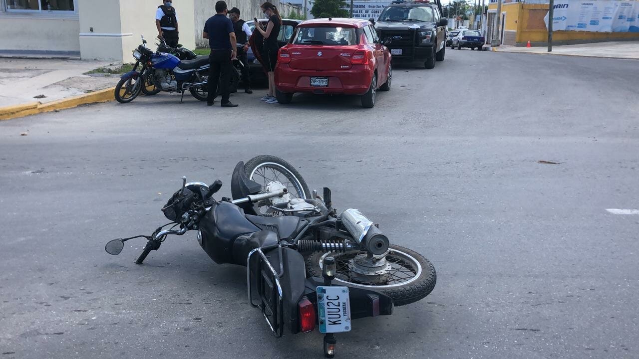 Con golpes en varias partes del cuerpo terminó un motociclista que se impactó en el costado de un automóvil que le cerró el paso al transitar sobre la avenida José López Portillo.