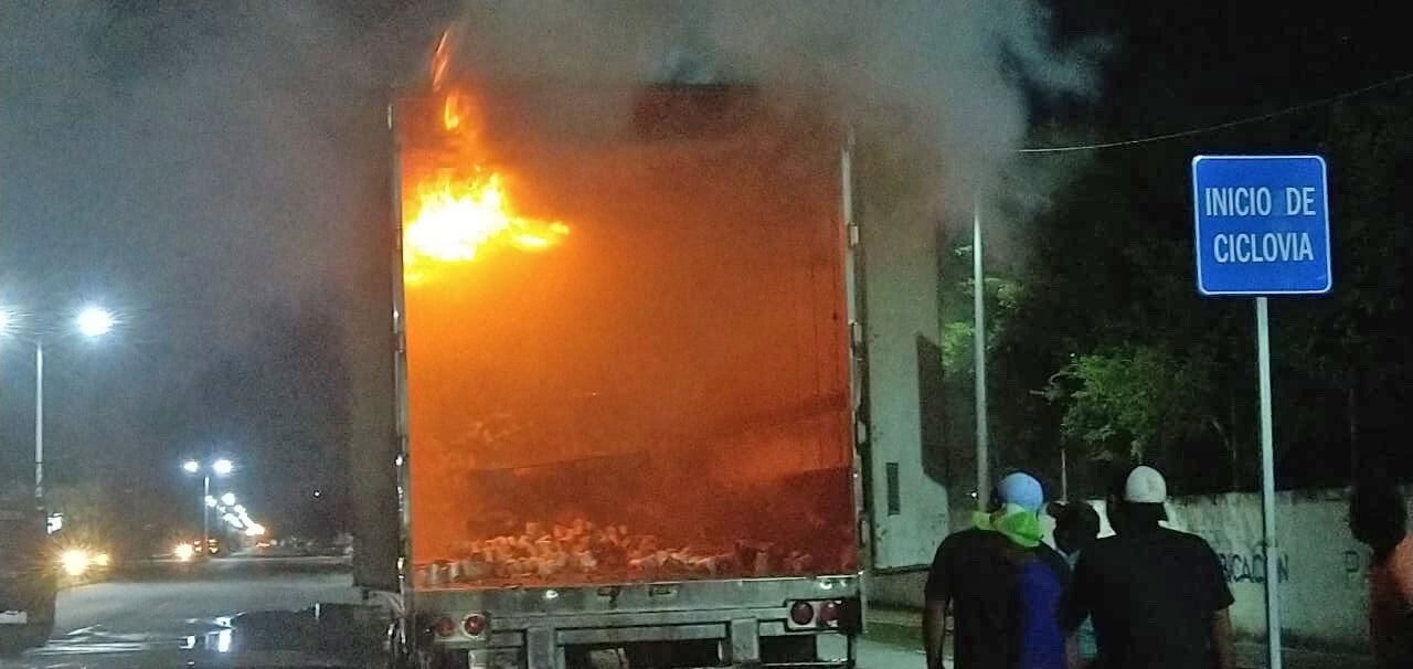 Una fuerte movilización por parte de cuerpos de emergencia se generó luego de que se incendiara la caja de un tráiler que trasladaba ciento de cajas de sopas instantáneas.