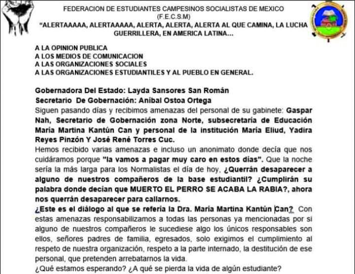 “Mi gobierno no va caer en sus provocaciones pero tampoco se puede estar permitiendo estar asaltando tráiler de mercancía. Porque los están utilizando, pues no son los normalistas de Hecelchakán sino de otras normales rurales que están viniendo a usarlos”, acotó.