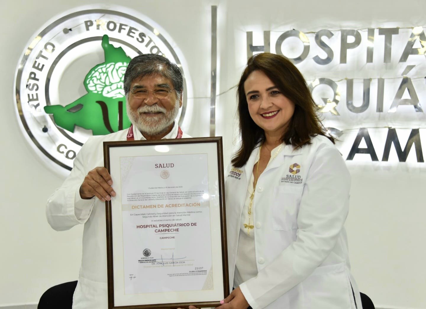 Ante la presencia de los trabajadores que componen el equipo de alta especialidad de esta unidad médica, se reconoció el empeño y dedicación al cuidado y bienestar de la salud mental de las familias campechanas, y se entregó el reconocimiento de acreditación el cual los certifica satisfactoriamente con los criterios de capacidad, calidad y seguridad para los usuarios.